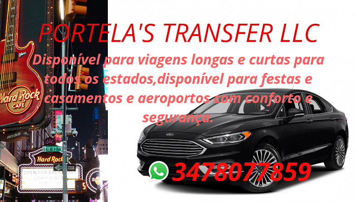 Portela's Transfer LLC, a sua melhor maneira de se locomover e curtir seus passeios, carro sempre limpo com motorista a sua disposição, disponível para viagens longas e curtas, disponível nos aeroportos de New York, New Jersey, Massachusetts e Pensilvânia, disponível para festas e casamentos.